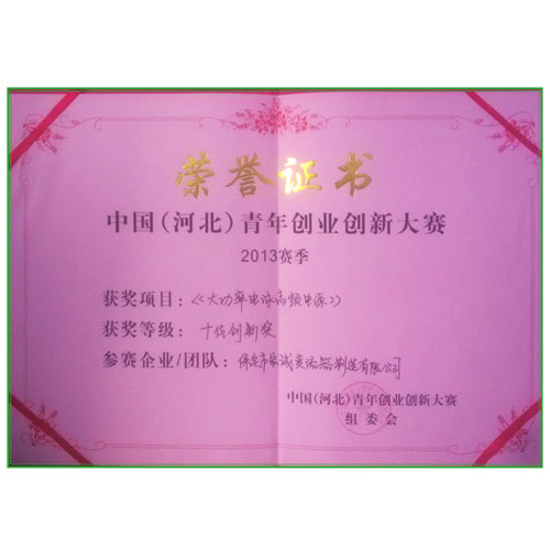 2013年中國(河北)青年創(chuàng)業(yè)創(chuàng)新大賽中榮獲十佳創(chuàng)新獎獎項(xiàng)。