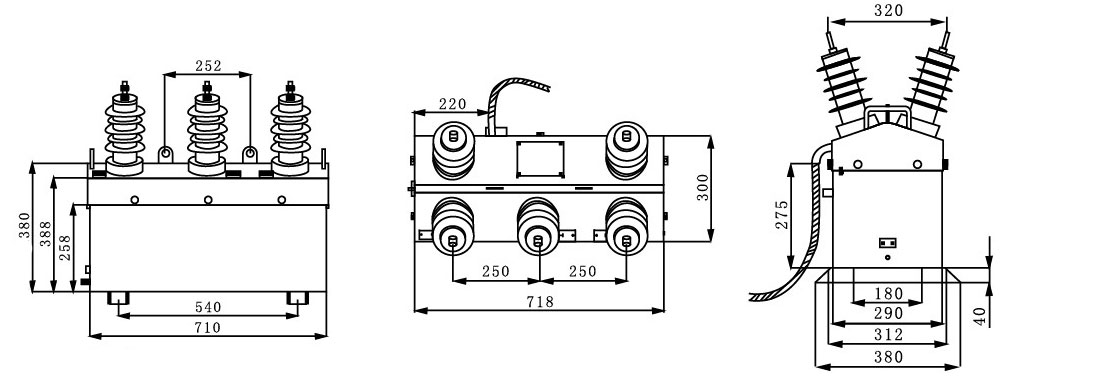 電流互感器也由硅橡膠澆注結構,鐵芯為封閉式,用高導磁非晶卷制而成。二個電壓互感器(PT)、二個電流互感器(CT)通過組合裝在一個封閉的鐵箱內,形成一體。