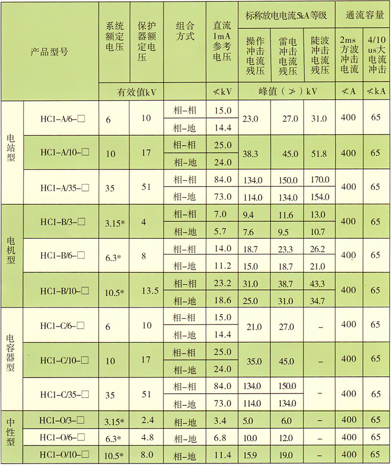 A、電站型:適合各種變壓器、開關(guān)、母線的過電壓保護