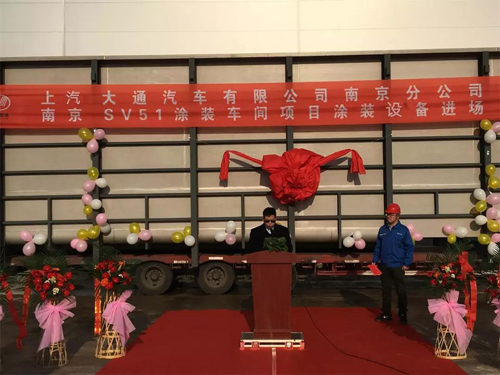 2017年12月19日上午9點18分,上汽大通汽車有限公司南京分公司SV51涂裝車間設備項目進場慶典在南京隆重舉行。上汽大通南京分公司副總經(jīng)理陳曉旭、ME總監(jiān)王穎、涂裝車間高級經(jīng)理趙敬寶、業(yè)主方代表、中汽公司涂裝工程院M+E團隊、建工二院B+U項目團隊、分包商代表,共60余人參加了啟動儀式,公司涂裝工程院副院長嚴正受邀參加了該儀式。