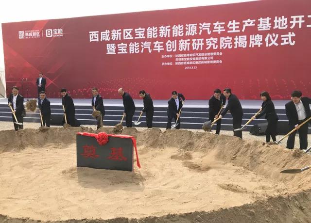 3月23日西咸新區(qū)寶能新能源汽車生產(chǎn)基地開工暨寶能汽車創(chuàng)新研究院揭牌儀式在陜西省西咸新區(qū)秦漢新城舉行。該項目總投資約400億元,規(guī)劃產(chǎn)能100萬輛(其中一期50萬輛)新能源汽車及配套項目,整車和零部件制造產(chǎn)值將超過千億元。這是寶能在新能源汽車產(chǎn)業(yè)的重大布局,也是西咸新區(qū)開工建設的千億級工業(yè)產(chǎn)業(yè)項目。