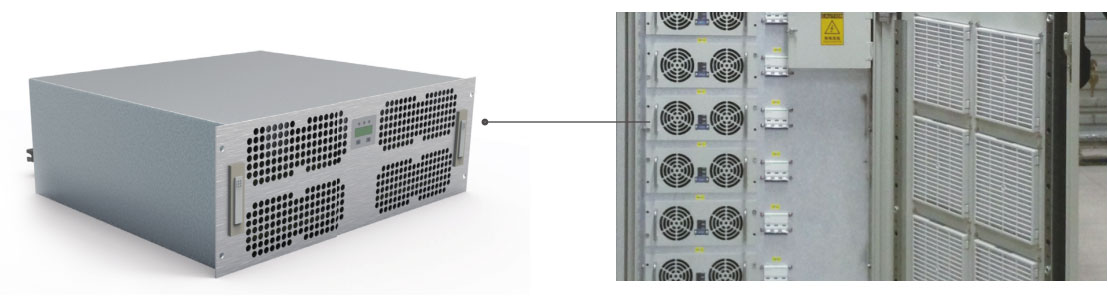 MACS 模塊電源采用 IGBT 高頻技術(shù),風(fēng)冷的散熱方式,本機帶 DSP 雙核 - 美國 TI公司,與監(jiān)控單元通信,機內(nèi)參數(shù)可通過CAN 接口由上級監(jiān)控單元設(shè)定或由上級監(jiān)控單元調(diào)節(jié)控制。采用軟開關(guān)技術(shù),效率高,電磁兼容性好,內(nèi)置 CPU 控制,工作穩(wěn)定可靠,寬的輸入電壓范圍。具有輸入過欠壓保護、輸出限流保護、輸出過壓保護、輸出短路保護、過溫保護及告警功能和模塊 n+1 并聯(lián)工作且具有均流功能。